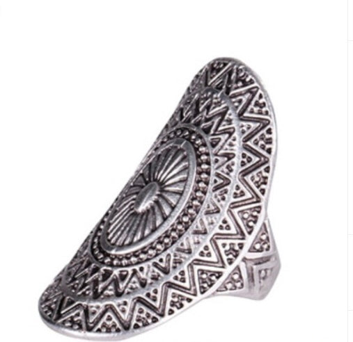 Discover the Oval Embossed Large Turkish Ring, a unique bohemian piece crafted from silver metal. Featuring an embossed ancient starburst design, this adjustable ring offers a standout statement look. Handmade in Turkey, its one-of-a-kind artistry ensures you won’t find this style anywhere else. Perfect alone or layered with other rings for a creative, personalized ensemble.